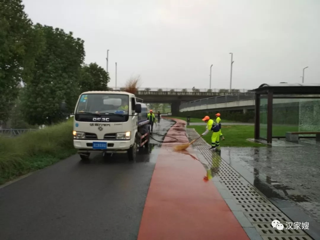 在滂沱大雨下,漢中東方清洗家政保潔員們依舊奮戰在一線,她(他)們冒雨清掃,發揚東方清洗家政敢打敢拼和不怕苦、不怕累的精神,與雨水為伴、與狂風為舞,奮力清掃景區道路,確保濱江新區、濕地公園雨后更加潔凈。
